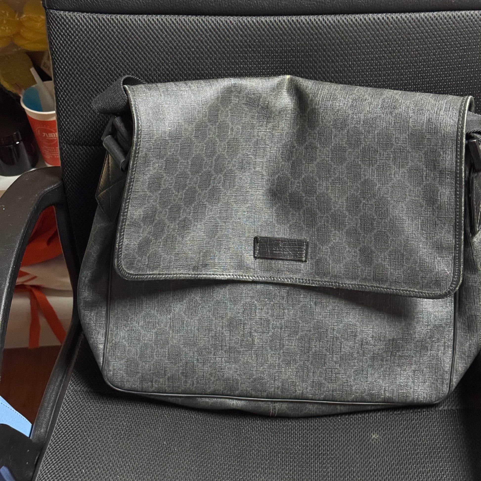 Gucci Black GG Coated Canvas Flap Messenger Bag